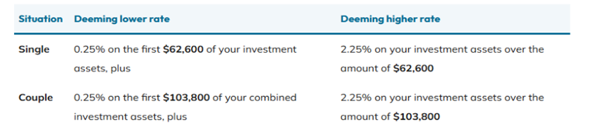 The deeming rates/thresholds that apply until 30 June 2025 are outlined below: