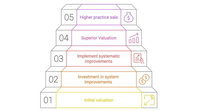 There is a reason successful franchise businesses focus on repeatable processes. This focus on designed efficiency delivers measurable results. One practice Lewin worked with increased their sales valuation from 2.0 times recurring revenue to 2.96 times in just thirteen months by implementing systematic improvements after investing a tenth of this increase. His own practice sold at 3.35 times recurring revenue versus the industry standard of 2.5 times.